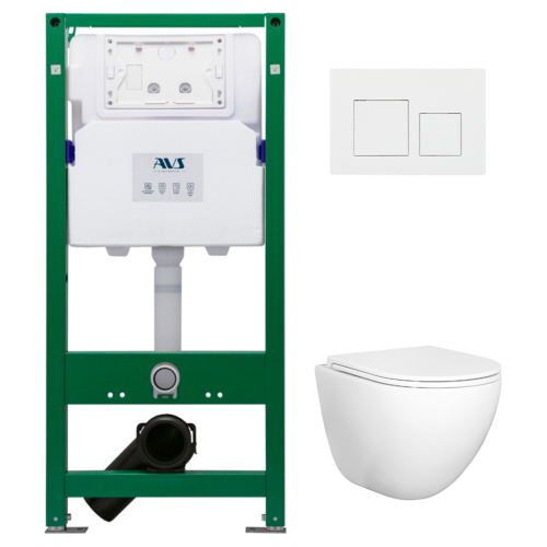 Комплект AVS 3в1: Инсталляция для унитаза 809-0006-7732C + Унитаз подвесной 801-0045-P-T2-GW + Клавиша смыва 809-0013-GW белая, квадратные кнопки